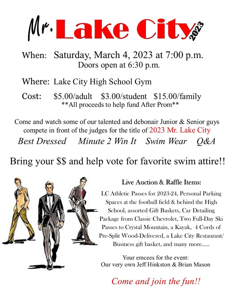 Lake City Middle & High School is accepting donations of bottled water, sports drinks, and individually wrapped snacks (such as chips, etc.) for our upcoming Field Days on May 22 ...
